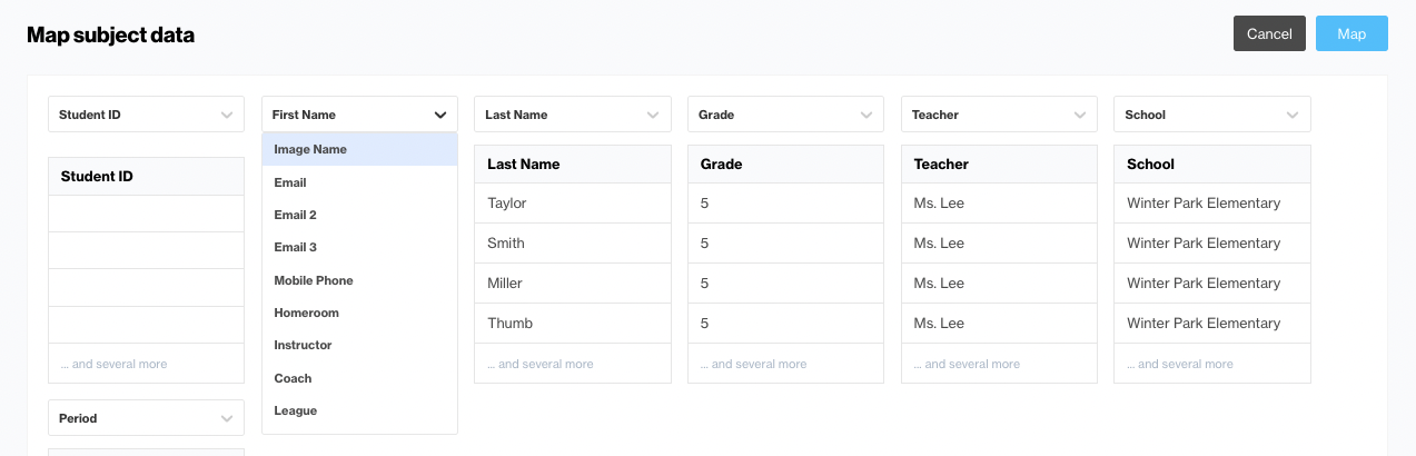 If a column was mapped incorrectly, it can be easily changed using the drop down header at the top of each column.