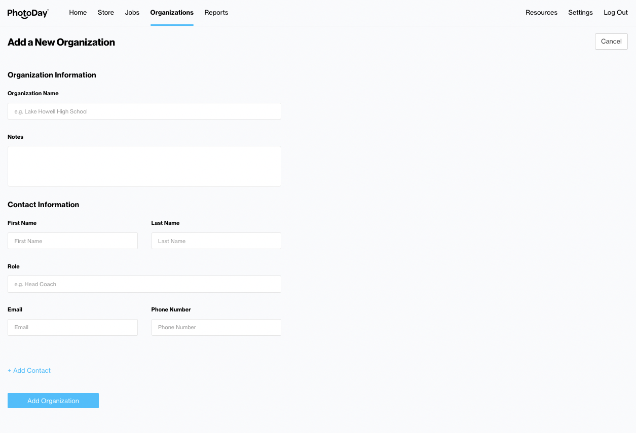 As a photographer, keeping your clients happy and rebooking your services is your number one priority. There’s a lot of information to keep track of in relation to your clients, and luckily, PhotoDay makes it easy to organize it all into one place. PhotoDay knows your clients are more than just people - they are leagues, schools, and perhaps even entire companies! This is why we refer to your clients as “Organizations”. An organization can represent many things, but they are always the party for which you’re taking photos.