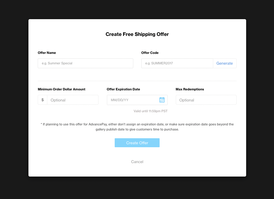 That’s all there is to offers! They’re a great way to light a fire under your customers and get them ordering. Keep in mind though, while multiple offer codes can be applied to a gallery, a customer can only apply ONE code to their purchase.