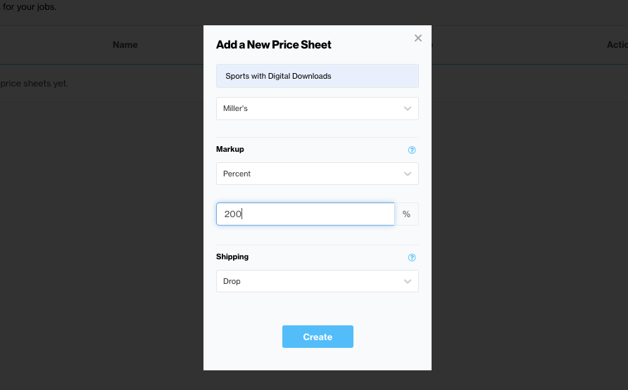 Next, you’ll need to choose what type of markup you would like placed on this price sheet.