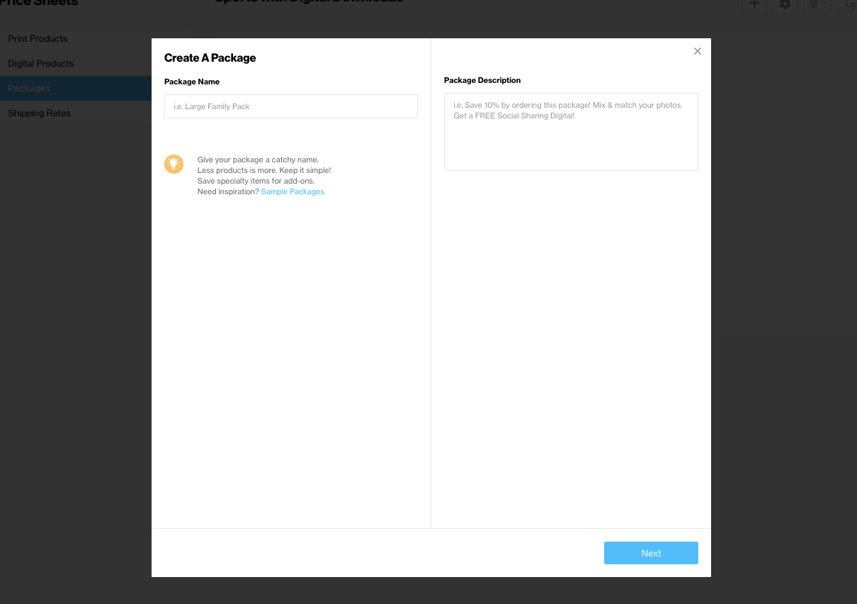 Packages Note: All packages allow customers to mix and match poses. When building packages, you have an option to limit the number of poses by selling in “sheets”.